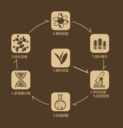集珍源的PLEESIT的技術(shù),即“植物有效成分高效分離純化技術(shù)集成系統(tǒng)”,通過了低溫破壁萃取,多級(jí)膜分離純化,真空低溫重組結(jié)晶,保存了植物最美麗的部分。并將他們美麗的元素帶到人們面前,給他們便捷的方式去服用這些讓自己美得讓自己心跳的精華。