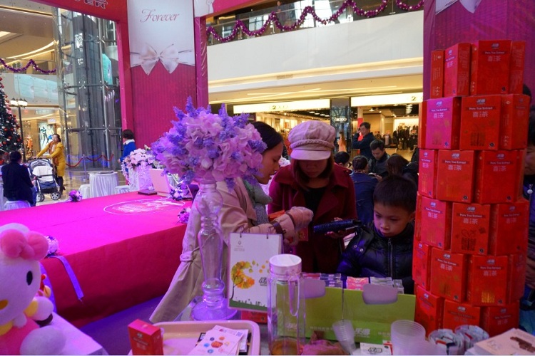 活動現(xiàn)場,前來咨詢購買的準夫婦絡繹不絕。準備1月底結婚的90后張女士一眼相中喜茶,當下決定采購喜茶作為婚禮小禮品送親朋好友,她表示喜茶的包裝很別致,寓意美好而特別,中式、西式婚禮都能用。近年來,婚禮的形式也日趨“私人定制”,喜禮形式也不拘一格,喜茶、喜煙等寓意美好的精致禮品越來越受關注。